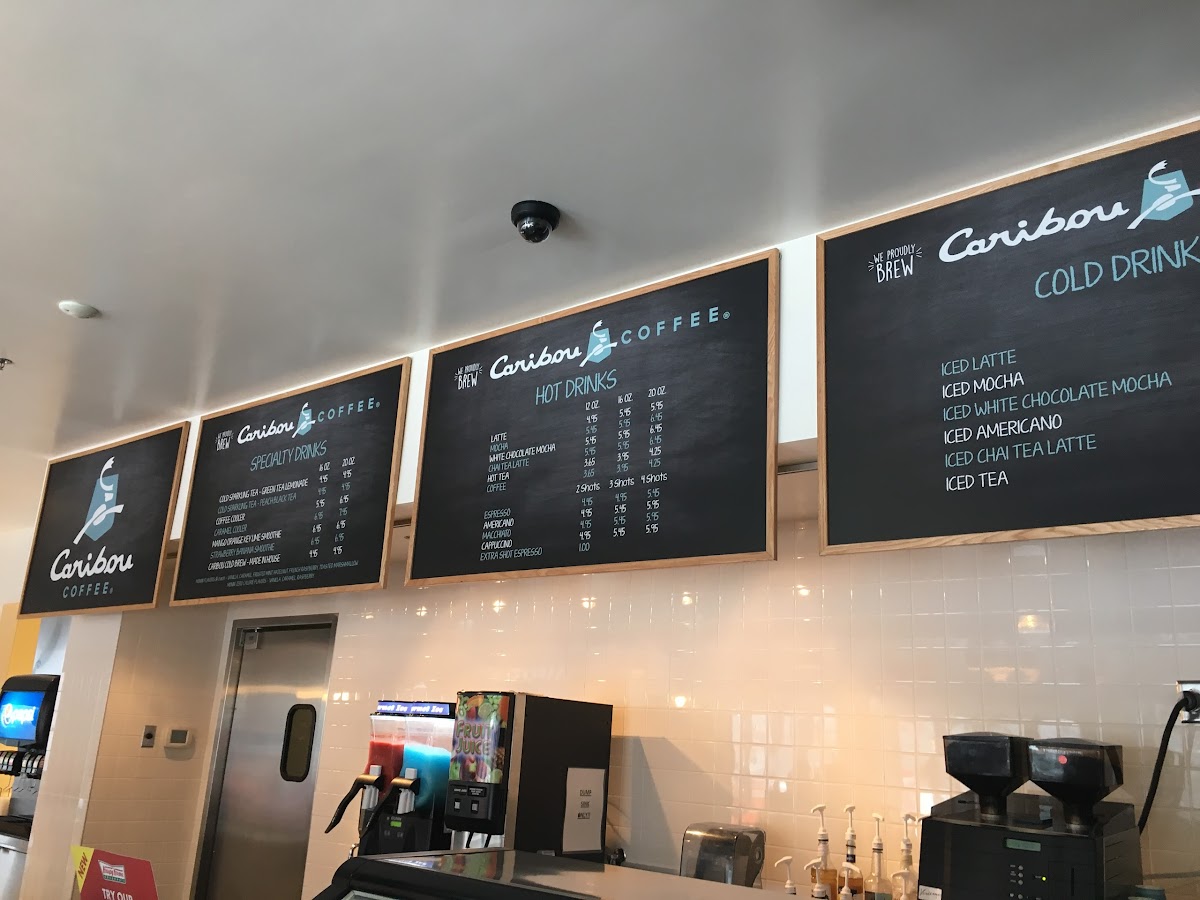 Specialty Drinks feature cold brewed and sparkling tea varieties, including Green Tea Lemonade and Caribou Cold Brew made in-house, providing chilled beverage options.